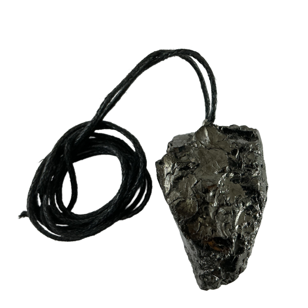 This is raw, natural piece of the highest grade of Shungite that has been crafted into a pendant. It is not set in silver and is quite chunky. All of these organic, rough pendants have a strong energy. This Shungite is named Military Grade as it was original found on a military site. Some vendors call this Elite or Noble Shungite. Basically, what either name means is the Shungite is 98% pure with hardly any base rock or other minerals mixed in. All of these pendants have potent energy and some still have trace elements on them as I like them to be as natural as possible. Some have been slightly polished to take sharp edges off, but this can clearly be seen in the photograph. I have also lightened up the photos a little so that the patterning or shape of the Shungite is clear.