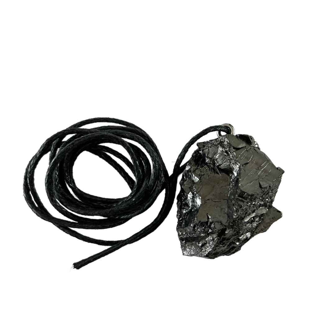 This is raw, natural piece of the highest grade of Shungite that has been crafted into a pendant. It is not set in silver and is quite chunky. All of these organic, rough pendants have a strong energy. This Shungite is named Military Grade as it was original found on a military site. Some vendors call this Elite or Noble Shungite. Basically, what either name means is the Shungite is 98% pure with hardly any base rock or other minerals mixed in. All of these pendants have potent energy and some still have trace elements on them as I like them to be as natural as possible. Some have been slightly polished to take sharp edges off, but this can clearly be seen in the photograph. I have also lightened up the photos a little so that the patterning or shape of the Shungite is clear.