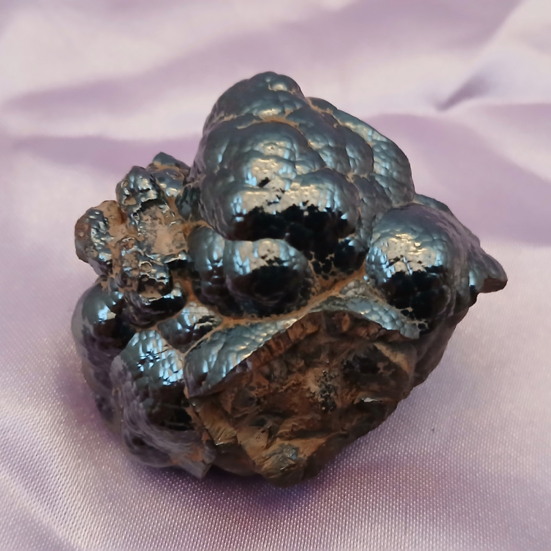 This is a beautiful piece of rough, natural Hematite, straight as it comes out of the ground. I actually prefer the rough to the polished as it has a more organic feel and is gentler in it’s grounding action. It is called Botryoidal when it forms in water, resembling a bunch of grapes. Goethite, Malachite and other minerals also form in this botryoidal shape when water is present.