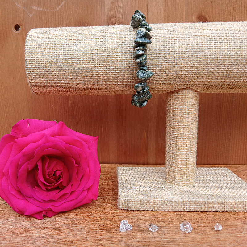 This is bracelet has smaller gemstones than the other ones in stock. The average stone size is 8 mm. You will receive the bracelet in the photograph, without the stand. Approx 6.5 cm (6.5 mm) long X 6.5 cm (60 mm) wide, measured across the bracelet when not stretched.. It is elasticated so will fit most wrists.