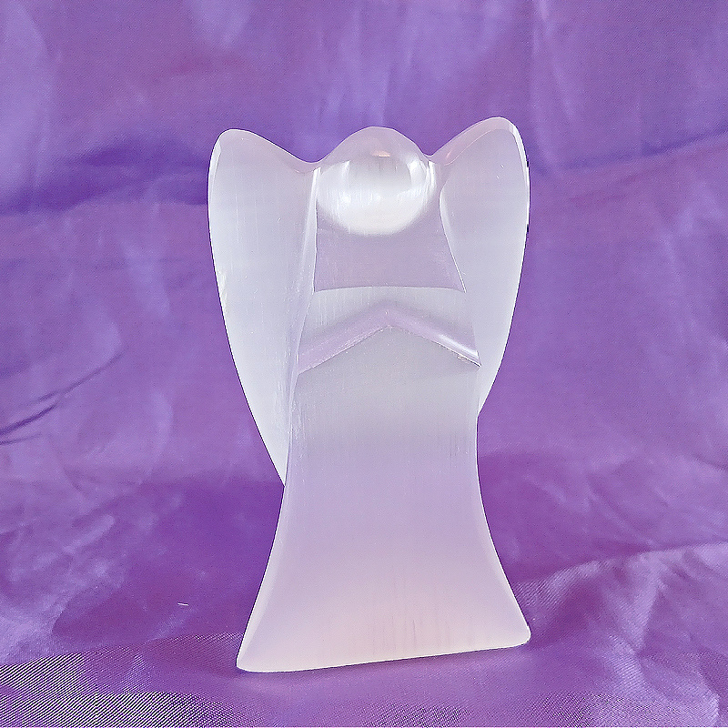 This is a beautiful, hand carved Angel in blissful Selenite. This piece is a good size to put on a bookshelf, windowsill, desk, bedside cabinet or indeed anywhere where you feel that it is needed and can harmonize any area! I even keep a Selenite Angel in the glove box of my car. The energy is simply majestic!